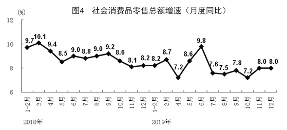 总的来看,2019年国民经济继续保持了总体平稳、稳中有进发展态势。同时也要看到,当前世界经济贸易增长放缓,动荡源和风险点增多,国内结构性体制性周期性问题交织,经济下行压力依然较大。下阶段,要坚持以习近平新时代中国特色社会主义思想为指导,按照党中央、国务院决策部署,坚持稳中求进工作总基调,坚持新发展理念和推动高质量发展,坚持以供给侧结构性改革为主线,坚持以改革开放为动力,坚决打赢三大攻坚战,全面做好“六稳”工作,统筹推进稳增长、促改革、调结构、惠民生、防风险、保稳定,保持经济运行在合理区间,确保全面建成小康社会和“十三五”规划圆满收官。
